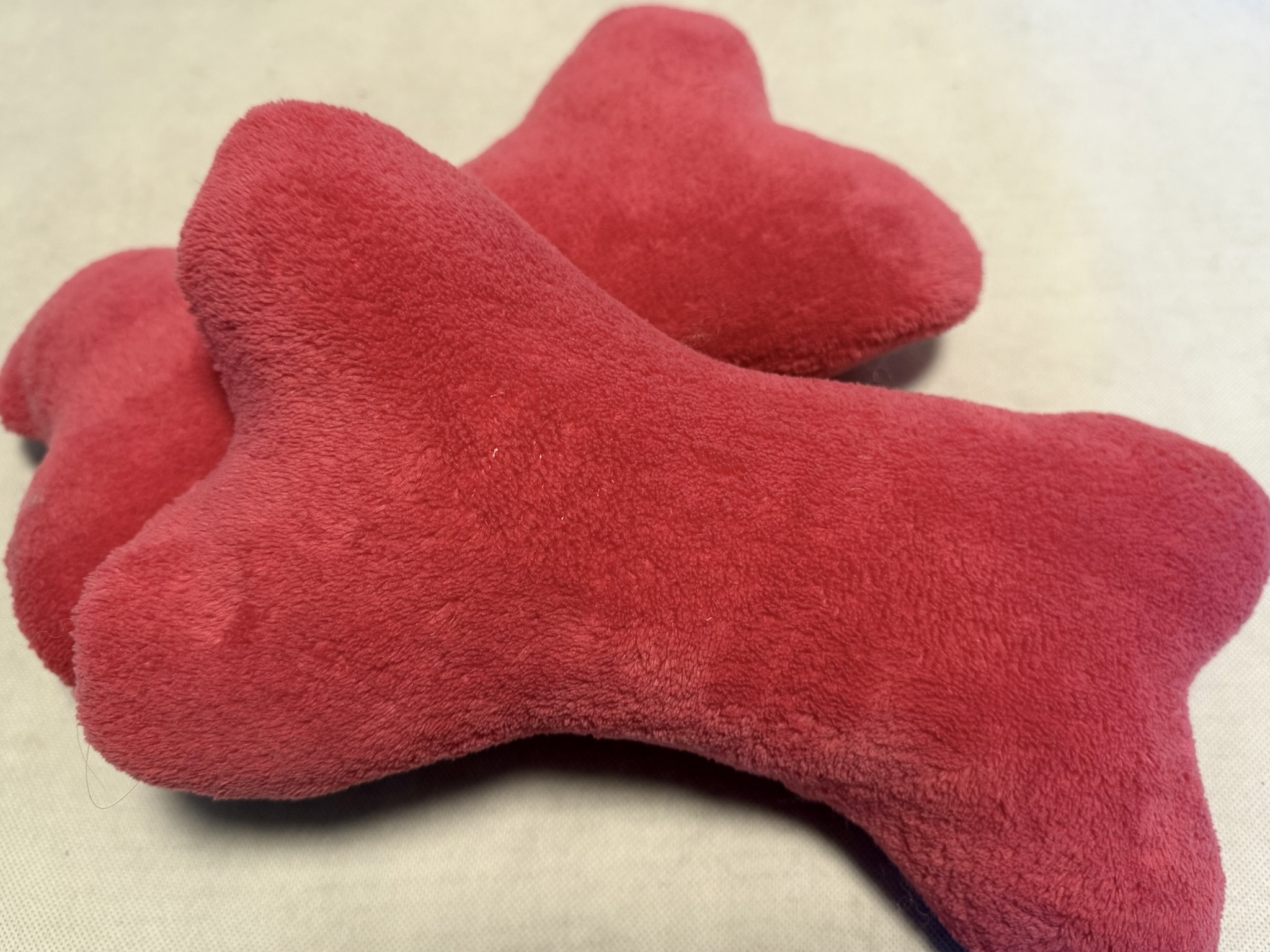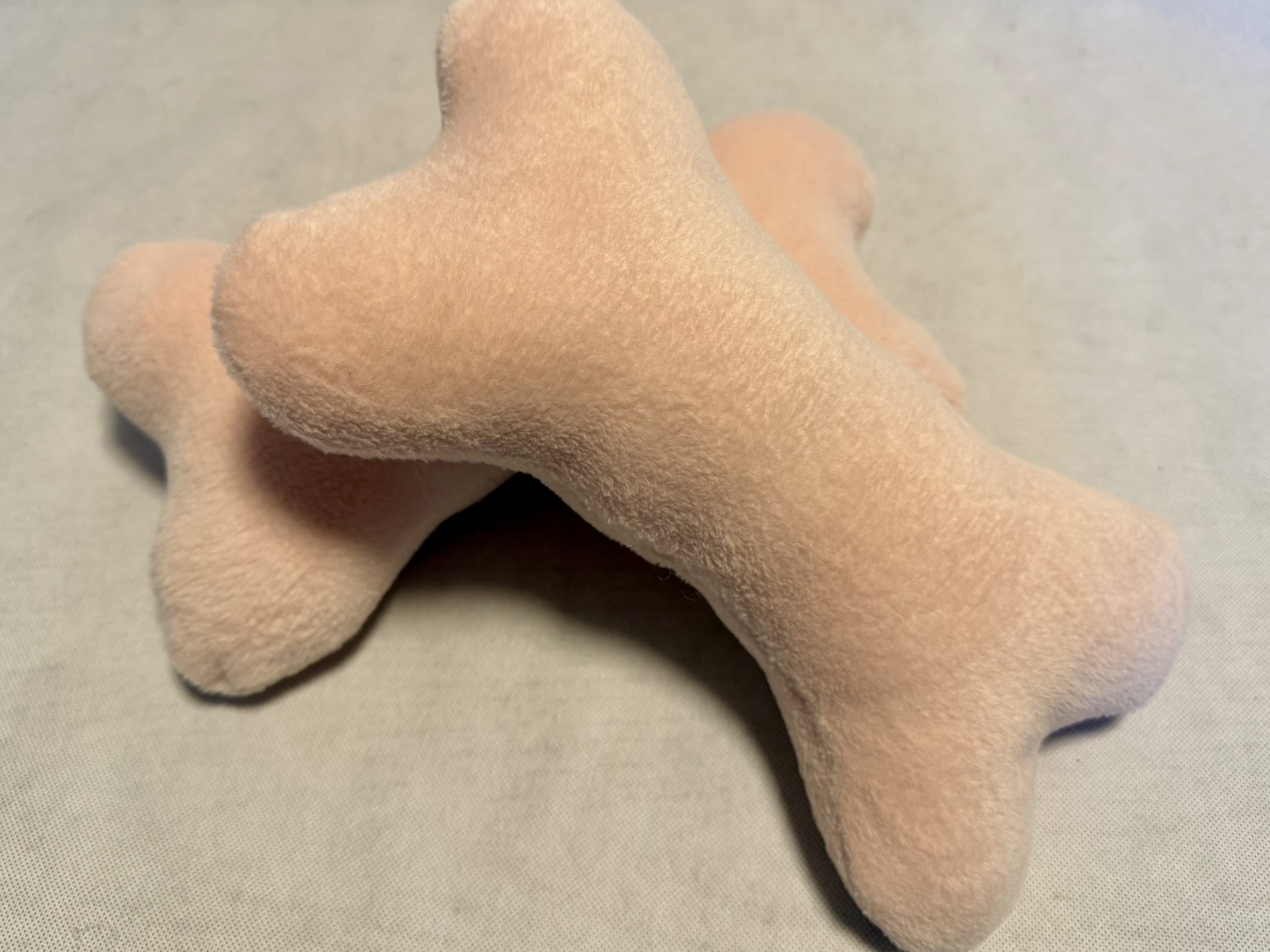 Kuschelknochen mit eingenähten Quietscher zum spielen und bespaßen von Welpen und Hunden. 100 % Handarbeit
